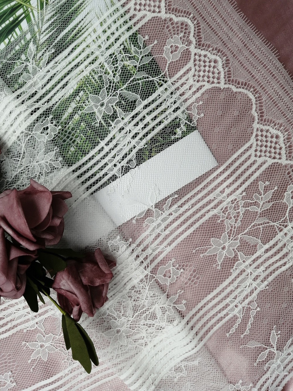 Putih Bulu Mata Kerang Polyester Lace Potong Kain untuk Pakaian Wanita BridalDress Tekstil Rumah Gaun Gadis Kecil