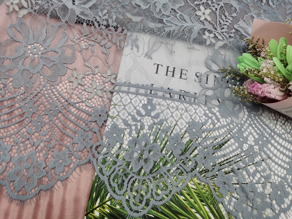 Grey Eyelash Scallop Edge Corded Lace Fabric untuk Evening Dress Lady's Garment Brand Tekstil Rumah Gaun Gadis Kecil untuk Tekstil Rumah, Tirai, Perlengkapan Tempat Tidur, Pakaian, Topi, Gaun Pengantin, Blus, Pakaian Wanita, Taplak Meja, Gaun Gadis Kecil, Sepatu Fashion Wanita, Celana , Celana Panjang, Celana Pendek, Jaket, dll.