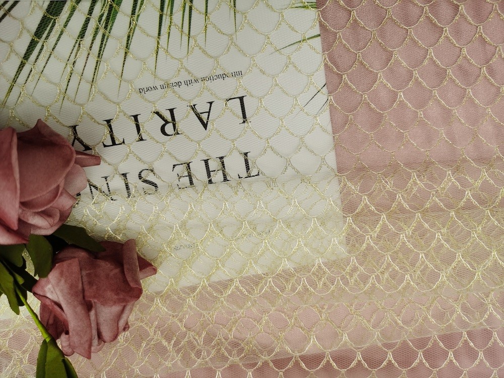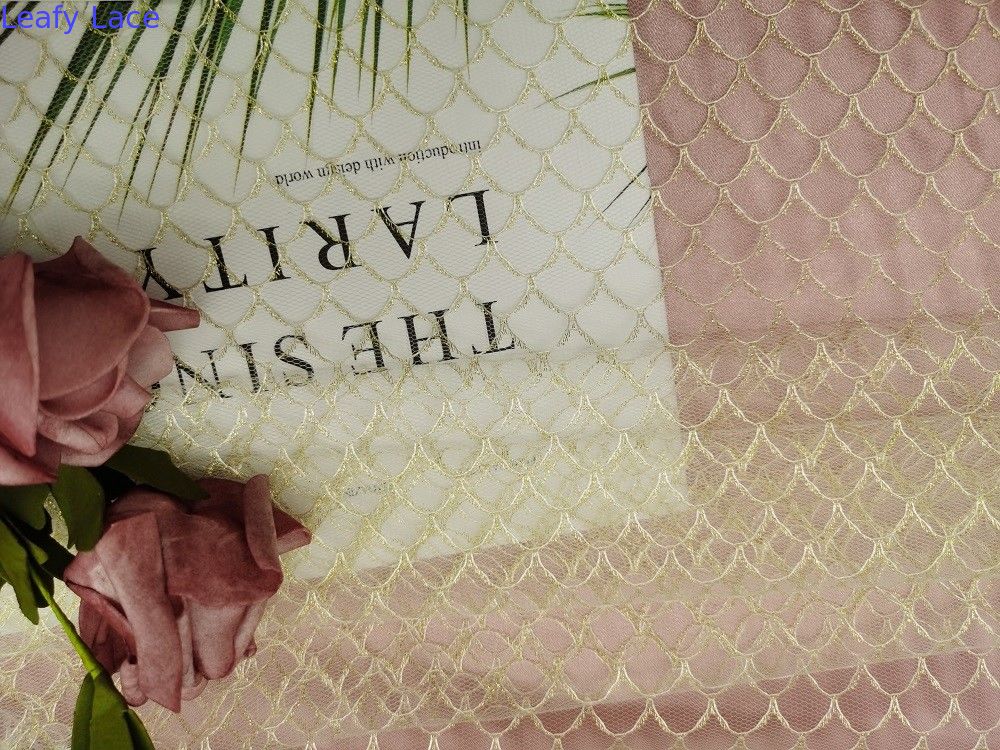 Emas Lurex Metalik Mesh Gading Lembut Tulle Mesh Kain untuk Gaun Malam Gaun Wanita Pakaian Merek Gadis Kecil GaunSpesifikasi: