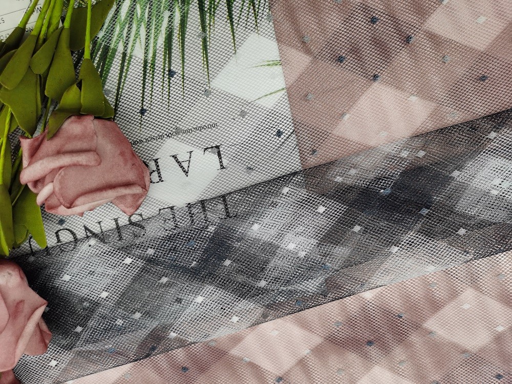 - Polyester Dot Flocked Printing Mesh Printed Lace Fabric untuk Evening Dress Lady's Dress Garment Brand Little Girl Dress dapat memenuhi persyaratan OEKO-Tex Standard 100.