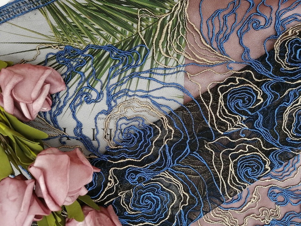 Menyoroti: | Kain Renda Bordir Bunga 125CM,Kain Renda Bordir Bunga Poliester 100%,Kain Jaring Bunga Bordir Biru |