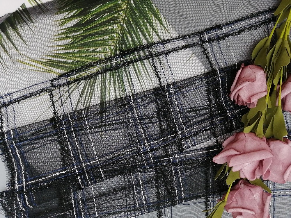 100% Polyester NavyTulle Mesh Payet Kain Bordir untuk Gaun Malam Gaun Wanita Pakaian Merek Gadis Kecil GaunSpesifikasi: