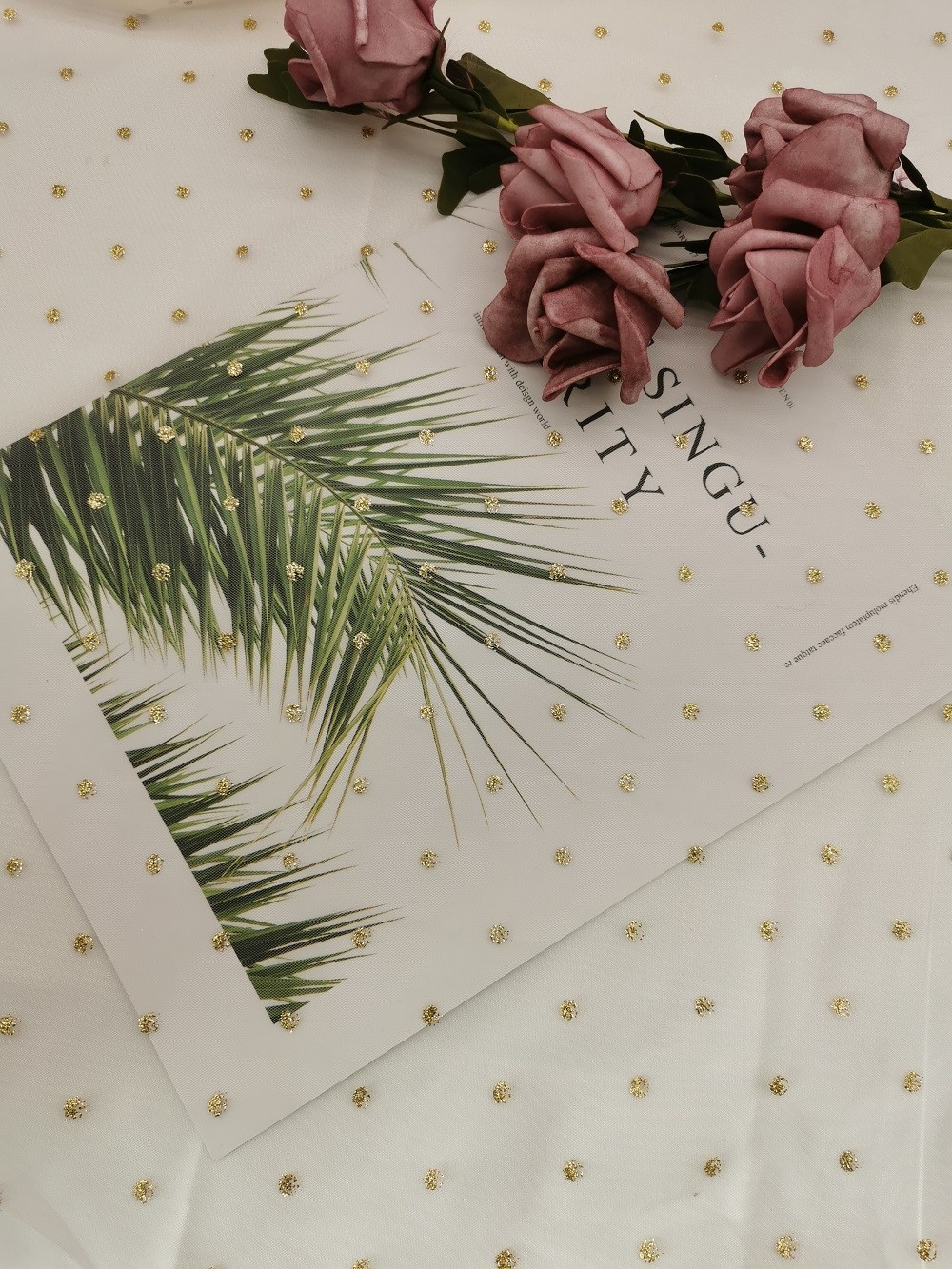 - Ivory Polka Dot metallic Glitter Tulle Mesh Foil Printed Fabric untuk Evening Dress Lady's Garment Shoes Little Girl Dress dapat memenuhi persyaratan OEKO-Tex Standard 100.