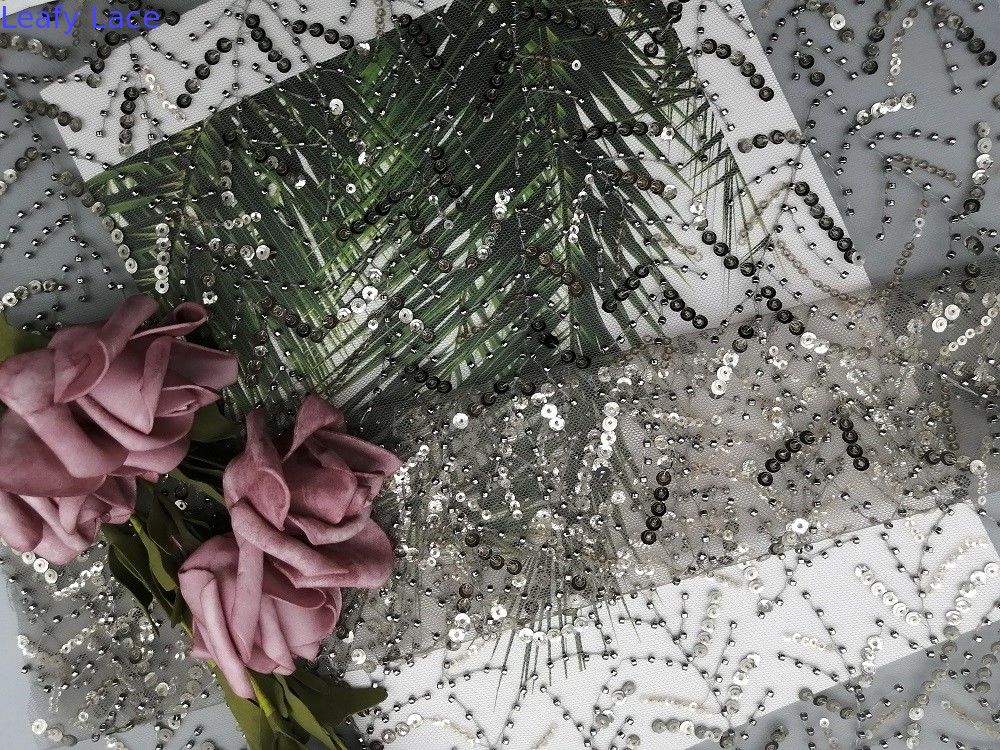 Grey BestSeller Payet Lace Fabric Party Fabric Beaded Embroidery Fabric For Wedding Dress Lady dress Dekorasi garmen Spesifikasi: