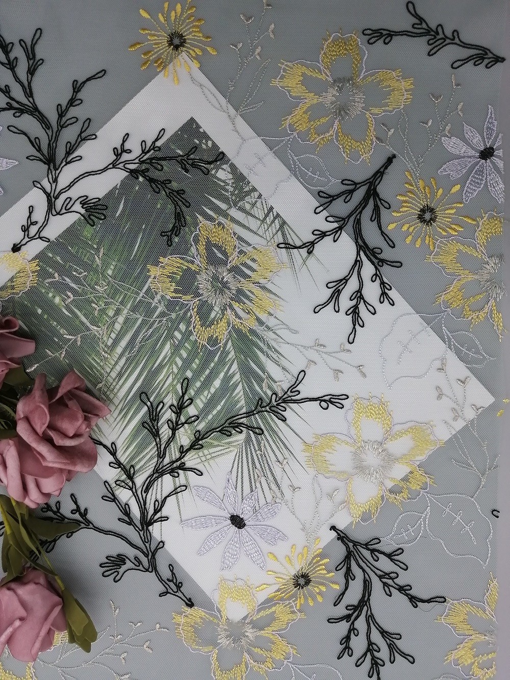Menyoroti: | Tulle Mesh Corded Lace Fabric,125cm Mesh Corded Lace Fabric,125cm Tulle Floral Lace Fabric |