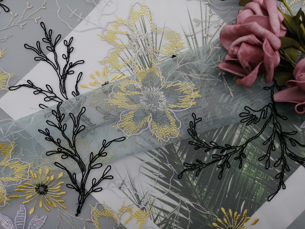 Bunga Kain Bordir Tulle Mesh Corded Lace Kain Pesta Kain Untuk Wanita Gaun Wanita Gaun Dekorasi Gadis Gaun Spesifikasi: