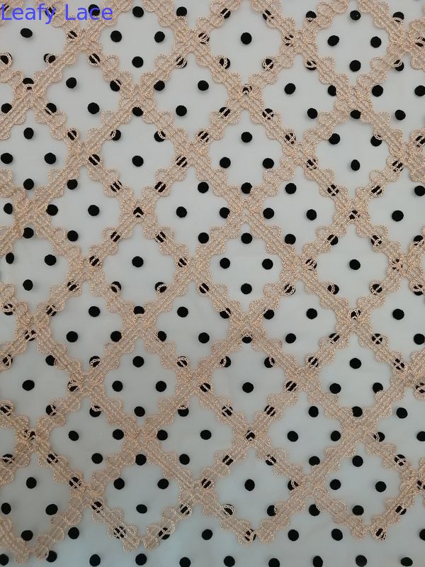 Polka Dot Flock Embroidery Flocked Tulle Mesh Flocked Mesh Fabric Untuk Wanita Gaun Wanita Gaun Dekorasi Gadis Gaun dapat memenuhi persyaratan OEKO-Tex Standard 100.