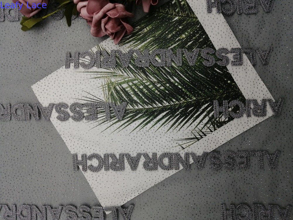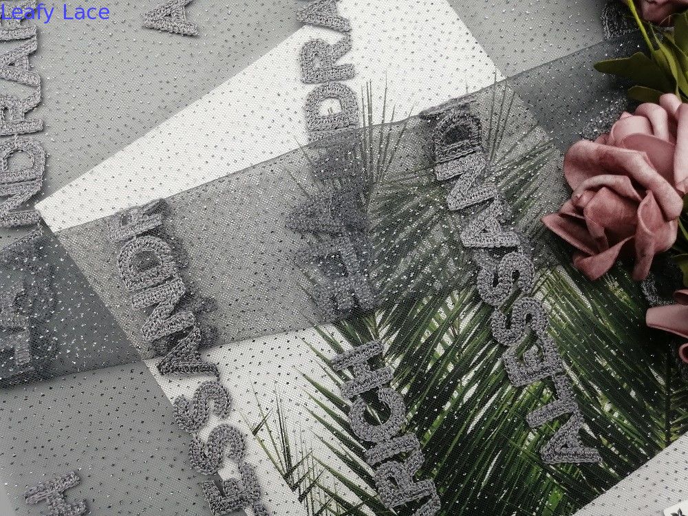 Abu-abu Glitter Foil Bordir Foil Tulle Mesh Kain Cetak Digagalkan Untuk Gaun Malam Gaun Wanita Dekorasi Gaun Gadis Spesifikasi: