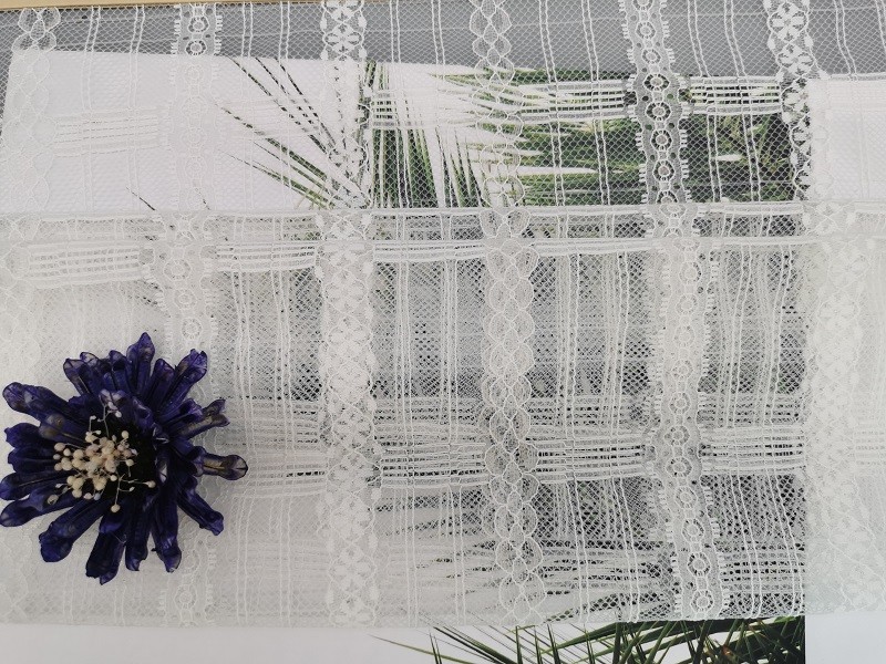 -Kain kain jala tulle renda geometris putih ringan kain gaun wanitadapat memenuhi persyaratan OEKO-Tex Standard 100.