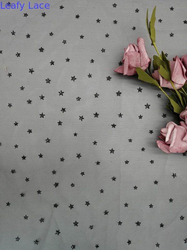 - Kain Metalik Bentuk Bintang Renda Tulle Mesh Gaun Wanita pencetakan foil Coating Tulle dapat memenuhi persyaratan OEKO-Tex Standard 100.