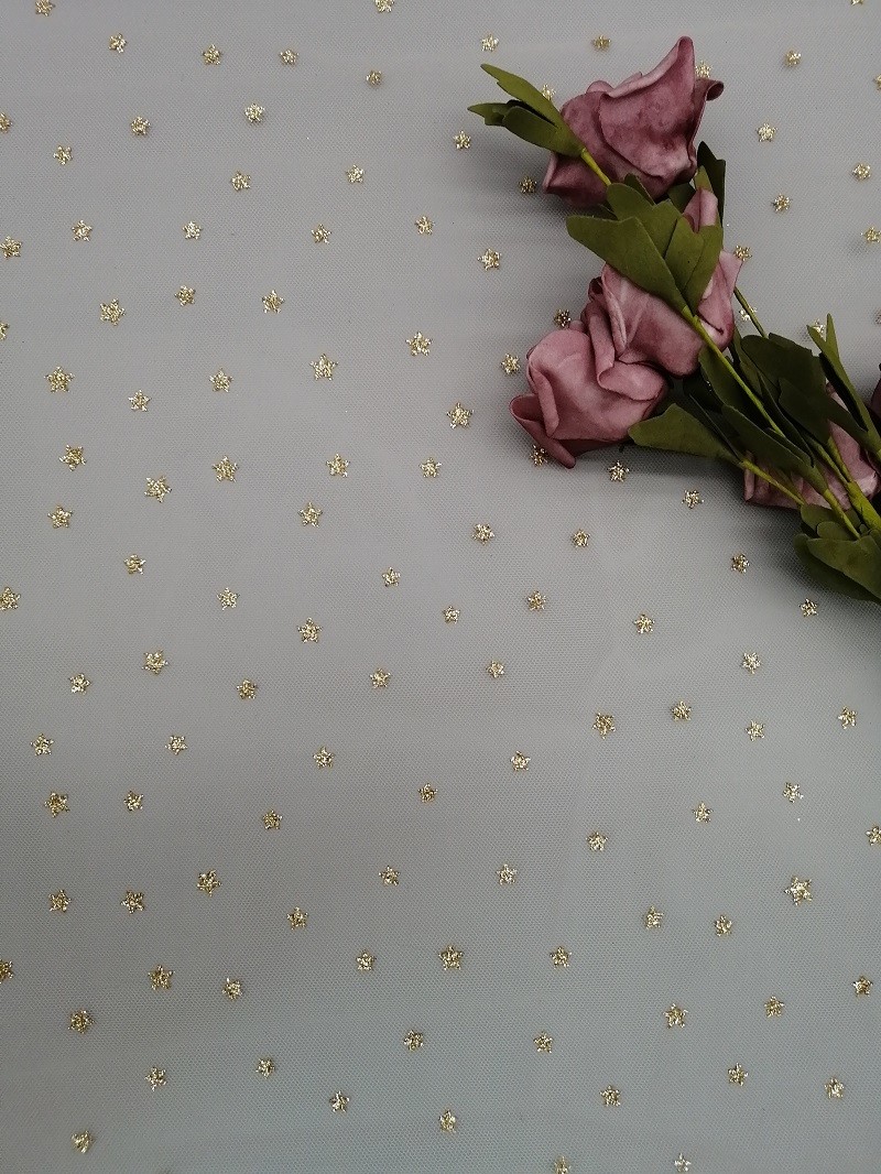 Metalik Bentuk Bintang Renda Tulle Mesh Kain Wanita Gaun pencetakan foil Lapisan Tulle