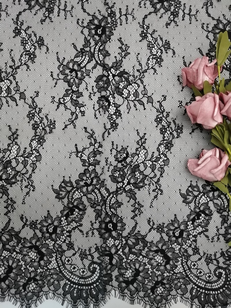 Gaya: | 100% nilon renda Bunga Hitam | Fitur: | Renda ringan |