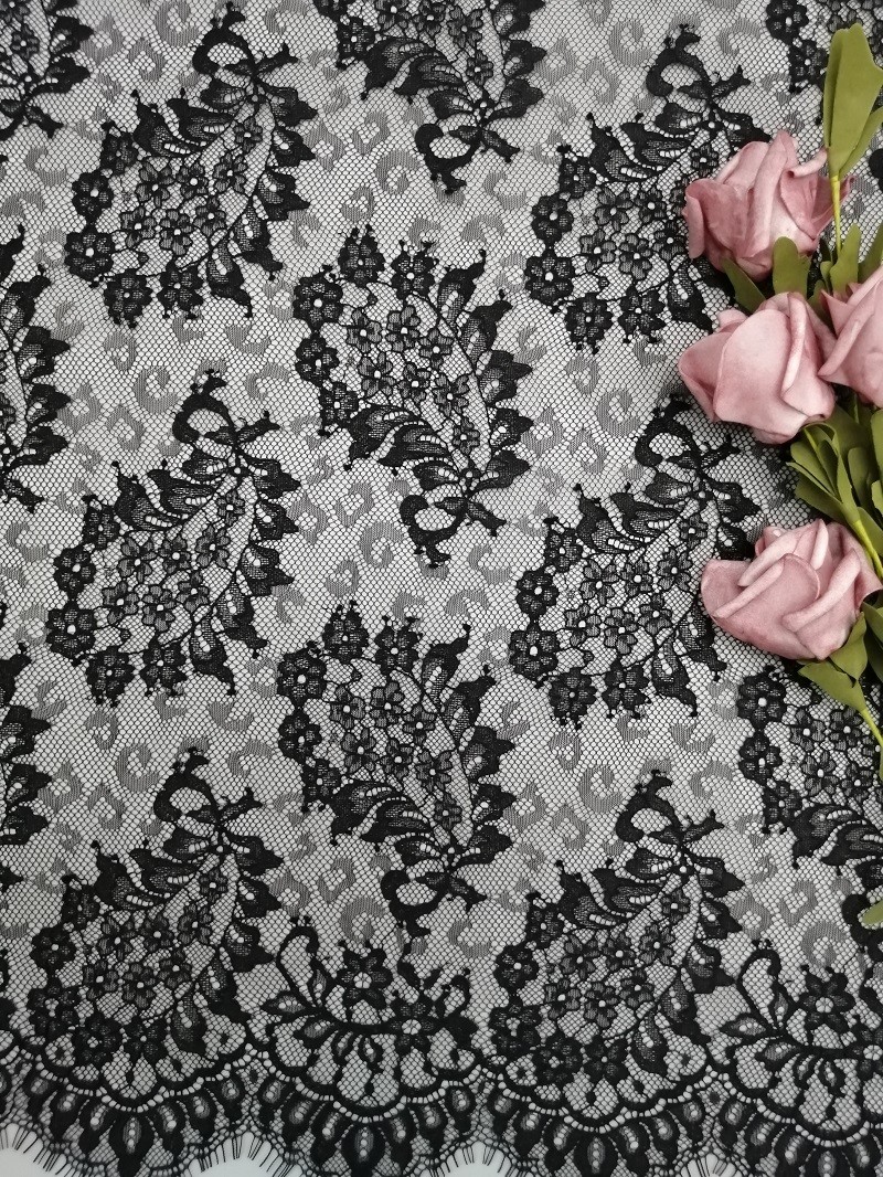 -Kain Tulle Renda Tulle Hitam Ringan Mesh Paisley Lace French Lace cdan memenuhi persyaratan OEKO-Tex Standard 100.