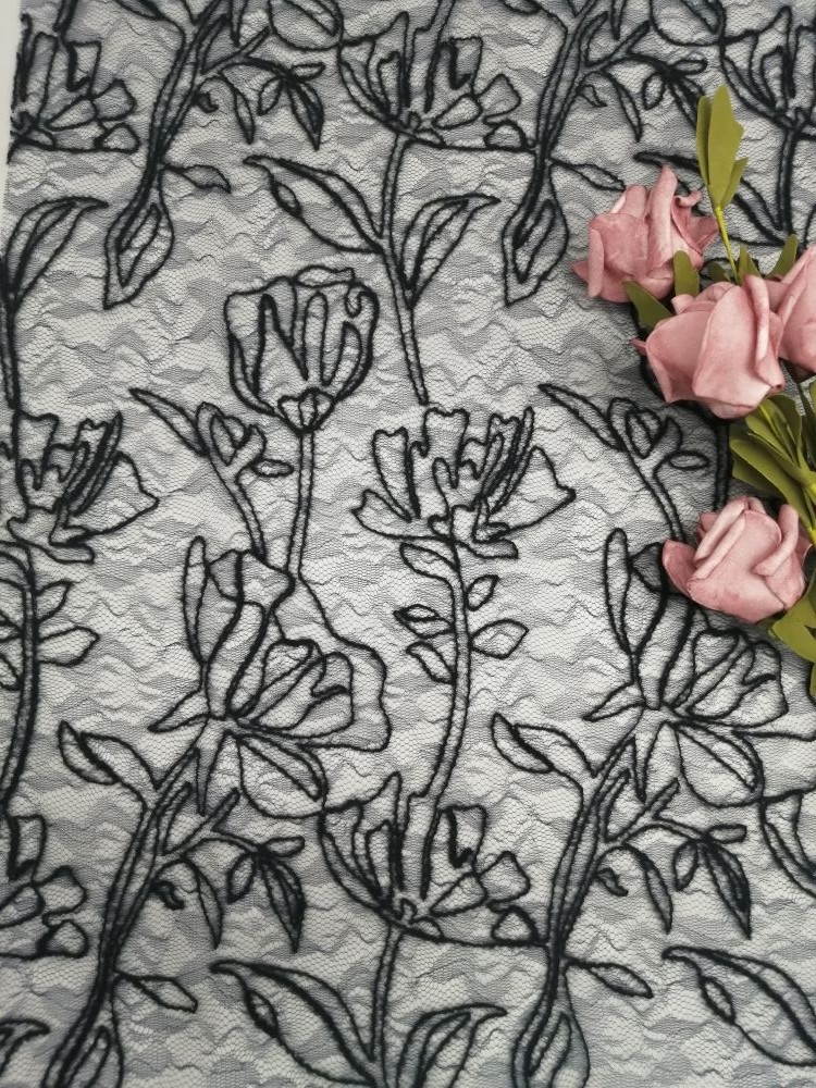 Corded Black Embroidery 3D floral Lace fabric Flower Tulle Mesh Spesifikasi: