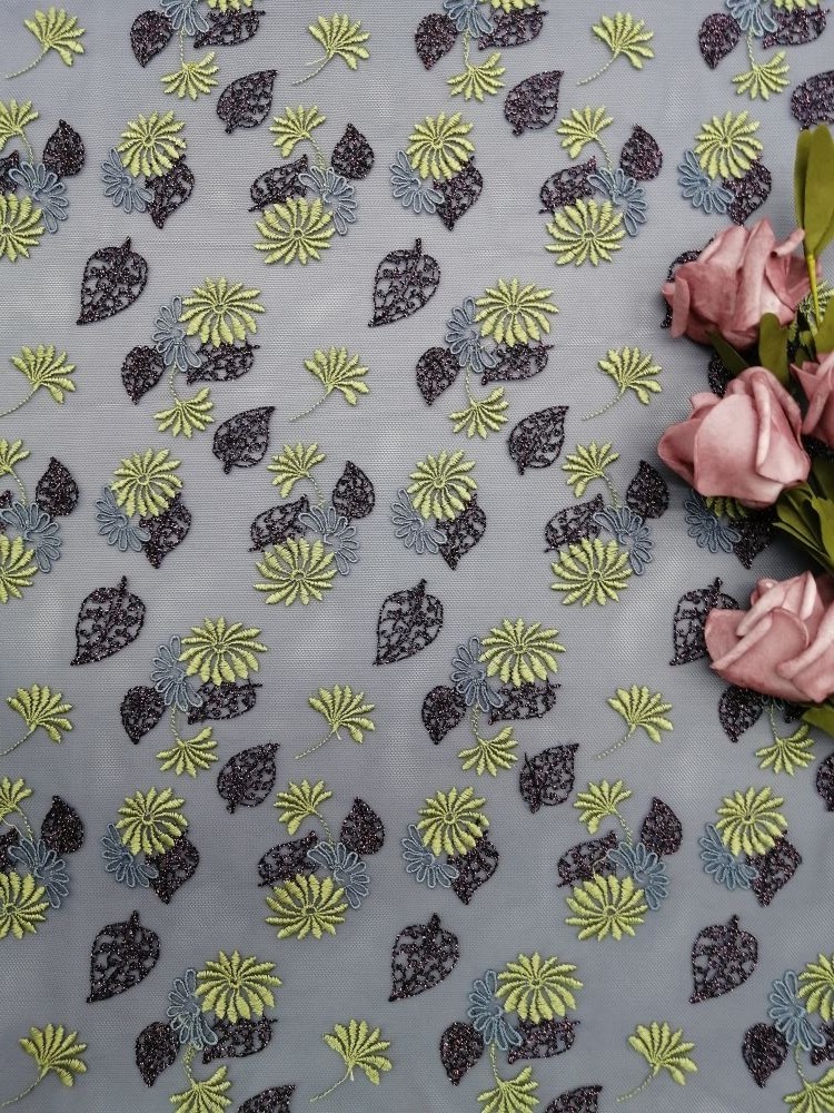 Kain Renda Bunga 3D Berwarna Kain Bordir Voile Metalic Tulle
