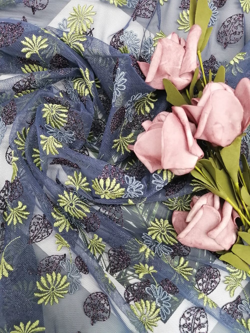 Kain Renda Bunga 3D Berwarna Kain Bordir Voile Metalic Tulle Spesifikasi: