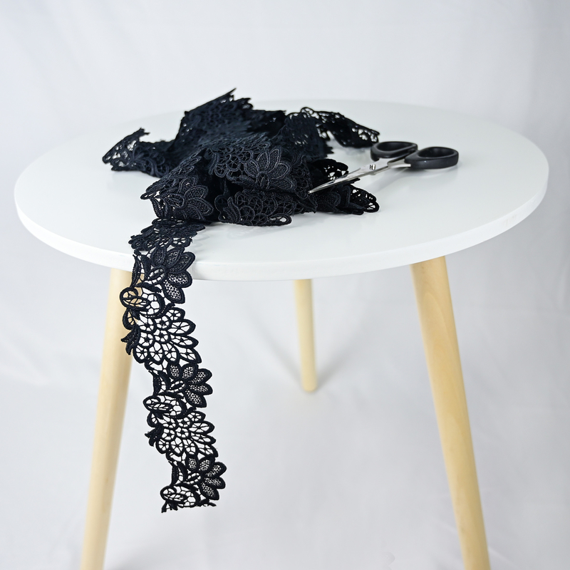 Bordir Jahit Kerajinan Pita Renda dicelup dalam warna apa pun oleh Pewarna Ramah Lingkungan. Pola Bunga yang halus membentuk seluruh desain yang klasik dan modis.
