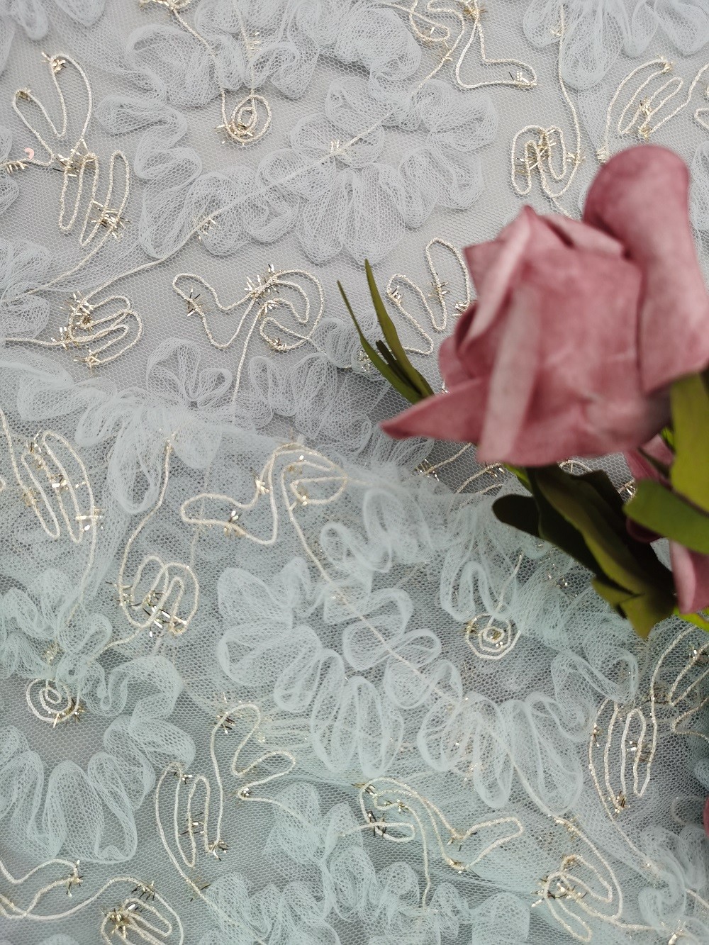 -Metalik Cording Tulle Bordir sangat lembut dan memiliki handfeel yang baik.Sangat mudah untuk membuat gaun atau rok yang indah dan fantastis.