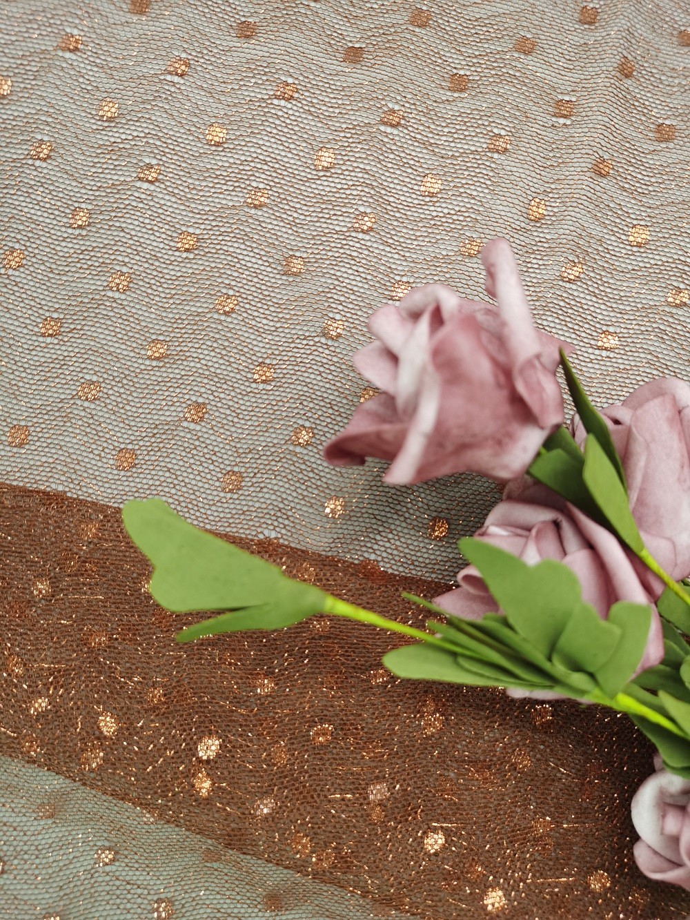 Warna Coklat Kain Renda Bordir Metalik Tulle Lace Ringan Dot Lace :