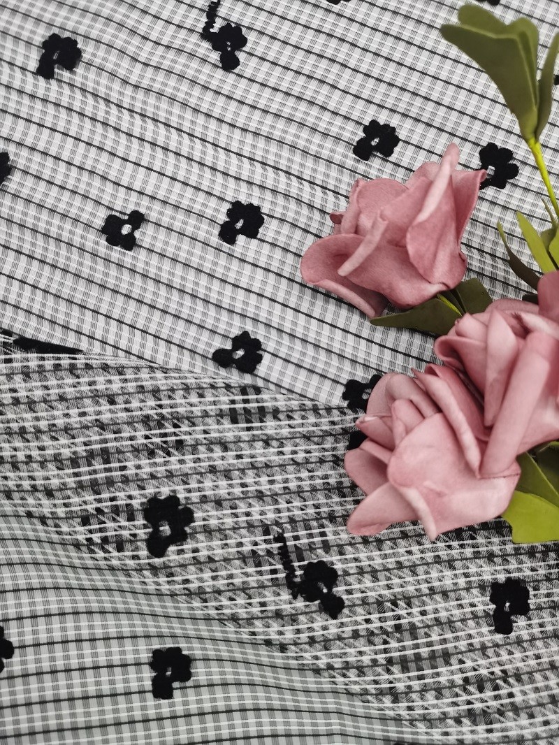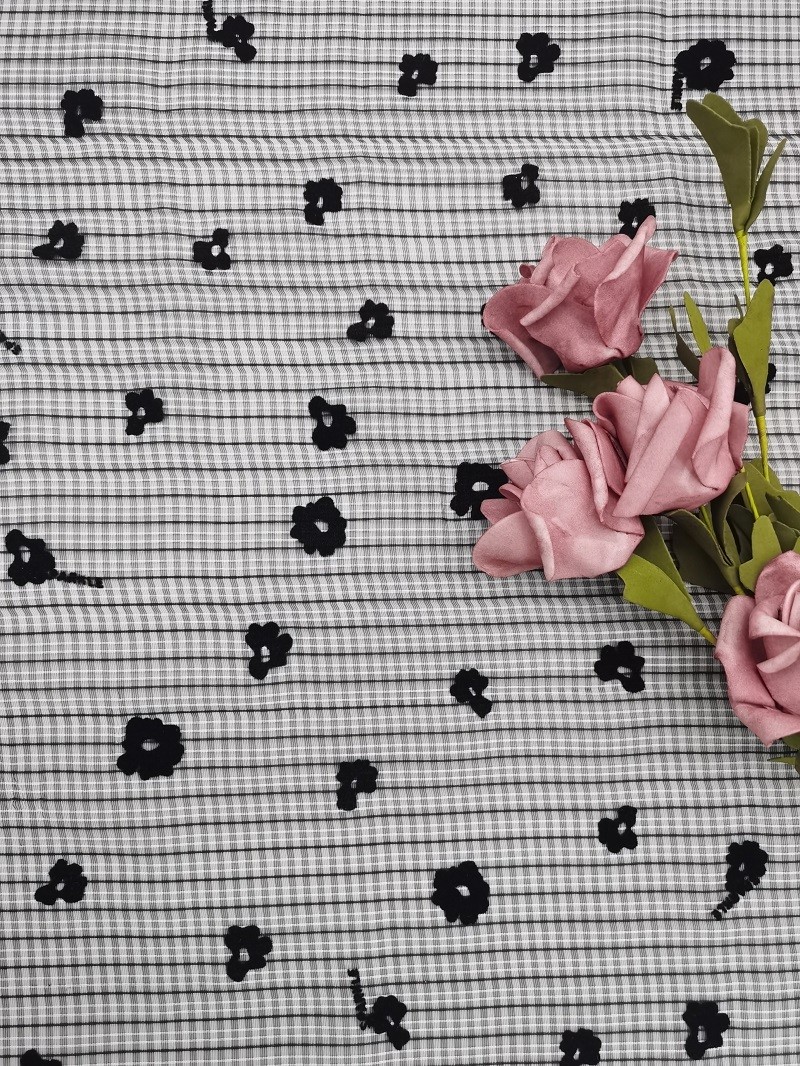 Flower Tulle Flocked Mesh Fabric Mesh dengan desain berkelompok :