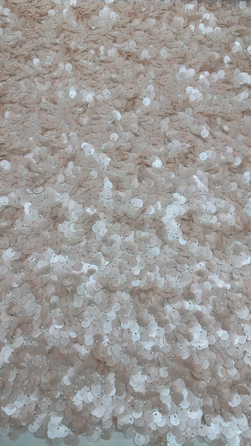 Tanah mesh dari Flower Sequin bordir Fabric memberikan dasar yang halus dan ringan untuk bordir sequin padat.yang memungkinkan warna sampanye bersinar sambil menawarkan dasar yang stabil untuk pekerjaan sekuen yang rumitHasilnya adalah kain yang tahan lama dan indah, dengan tekstur yang mempesona yang mengundang sentuhan dan kekaguman.