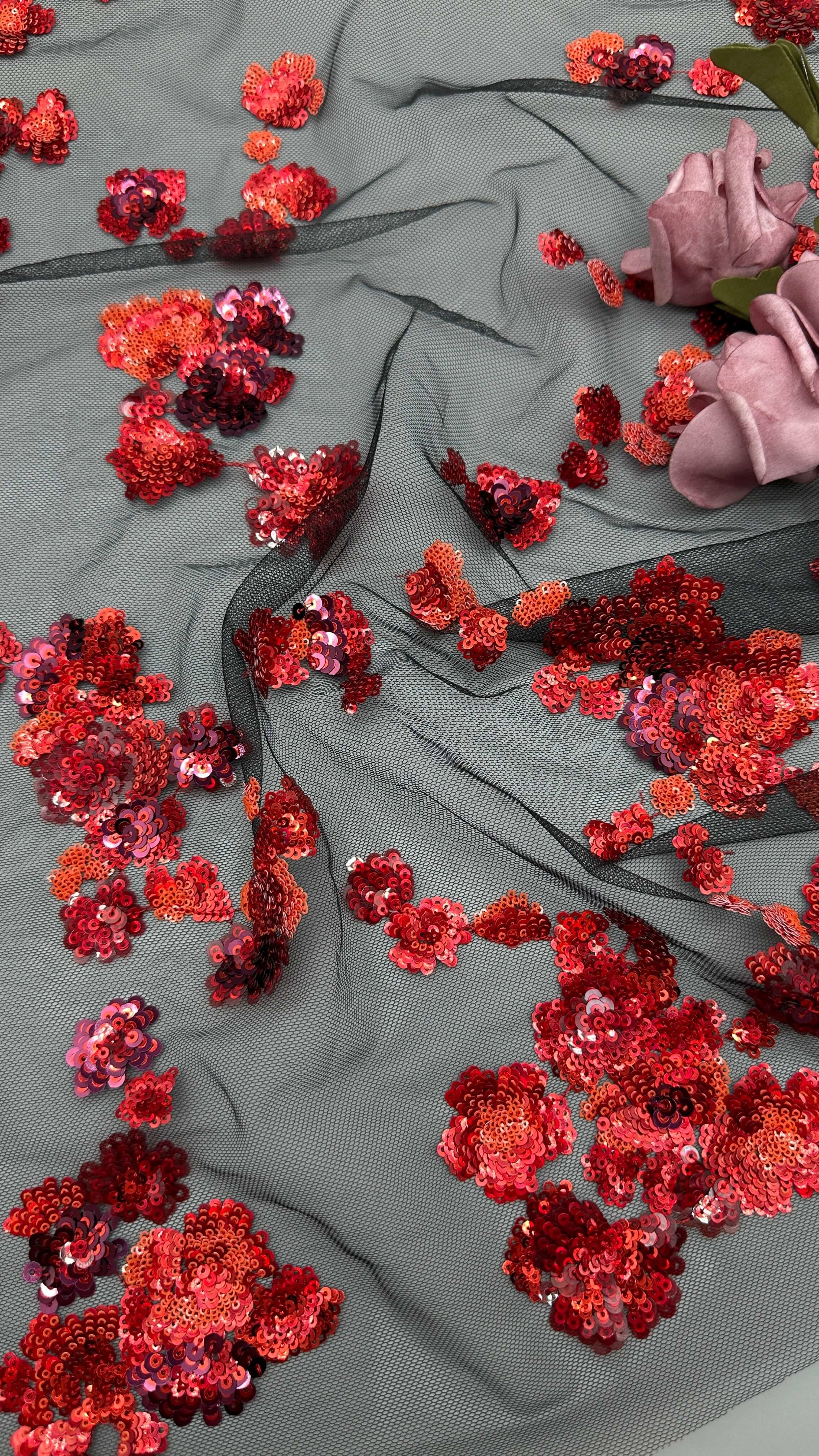 Menyoroti: | Kain renda bordir 3D bunga,Kain renda bersulam merah,Perhiasan Pernikahan Sequin Kain renda bordir |