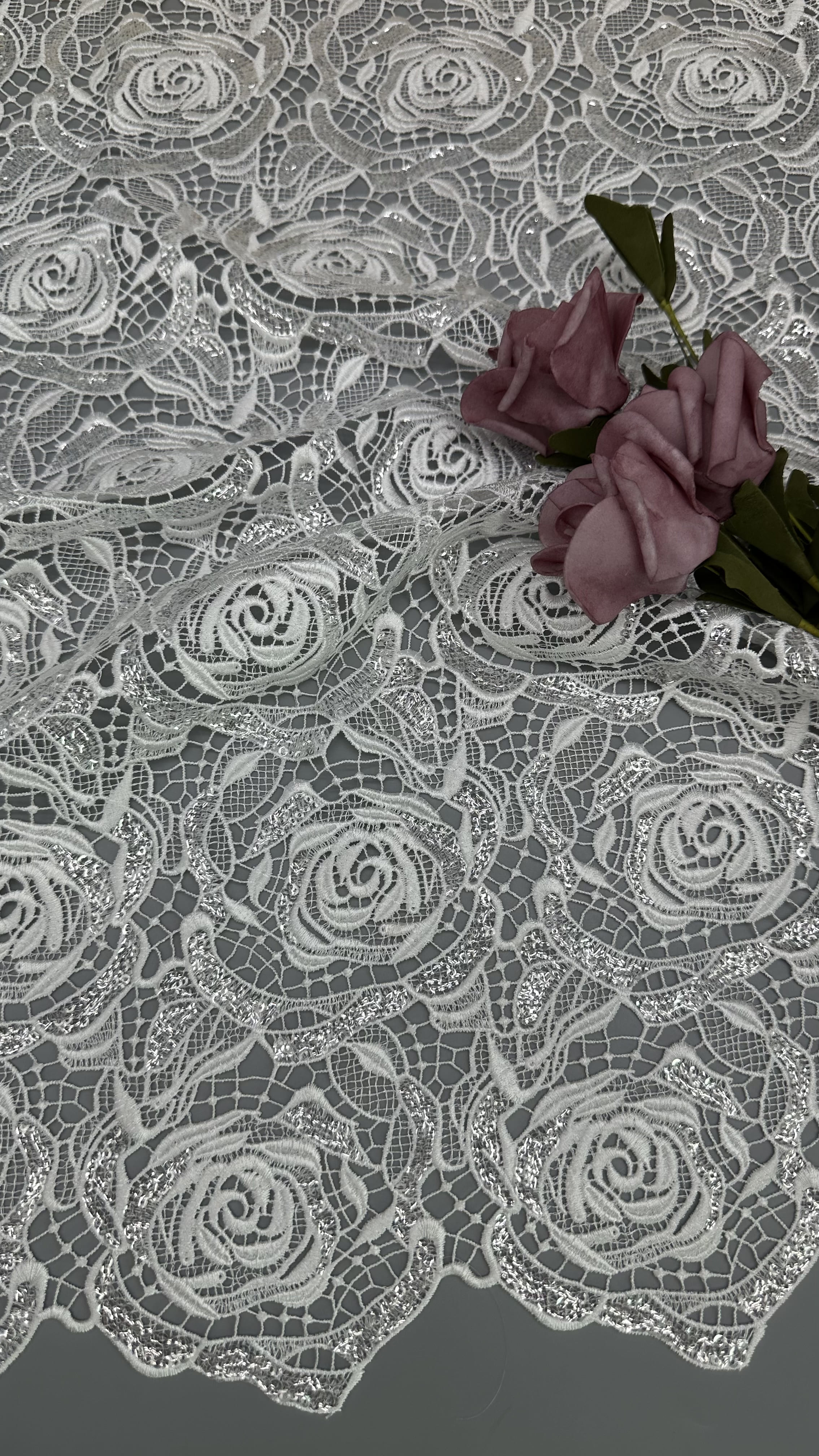 | Gaya: | Kain renda bertali | Jenis: | Kain bordir |