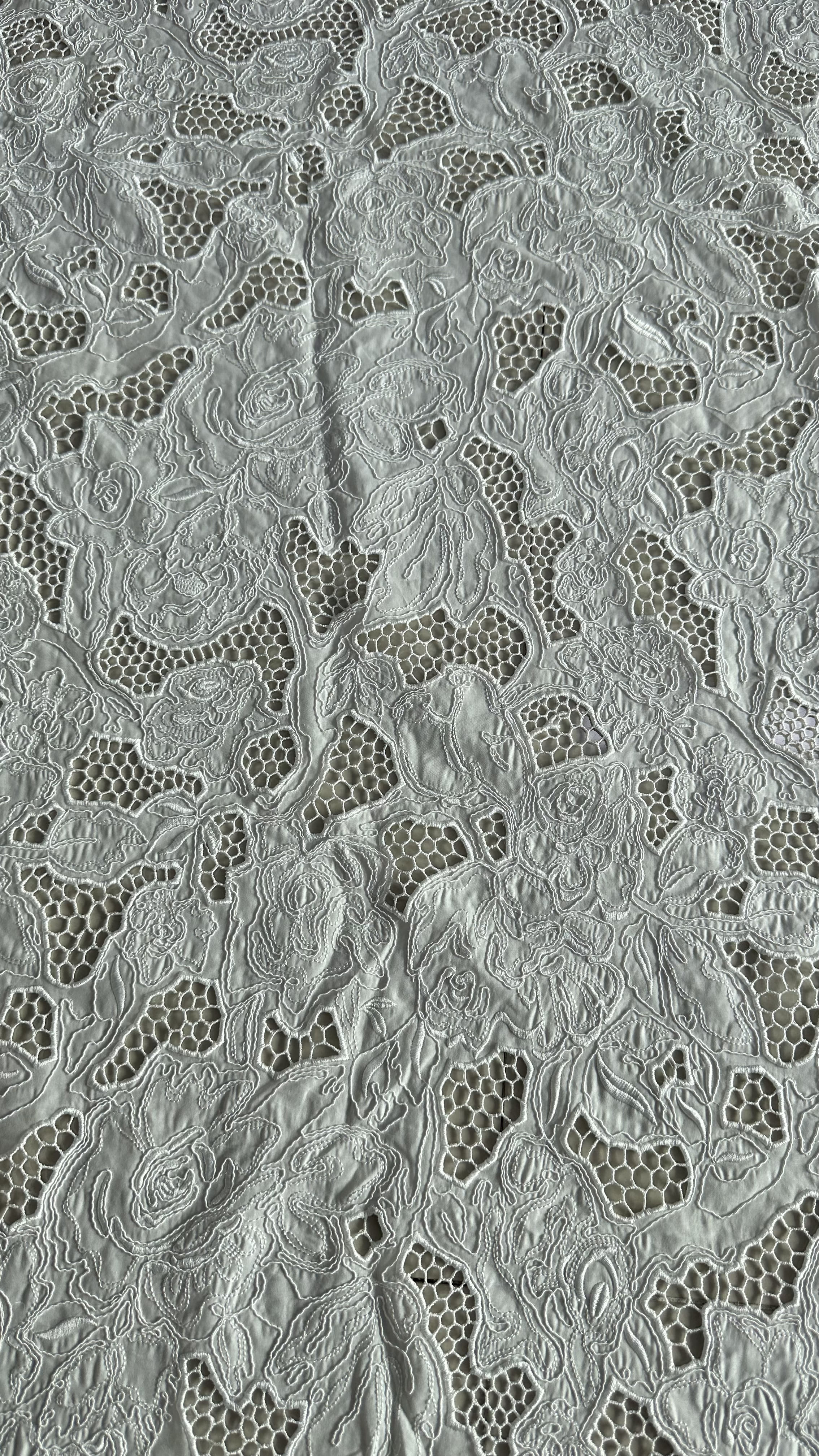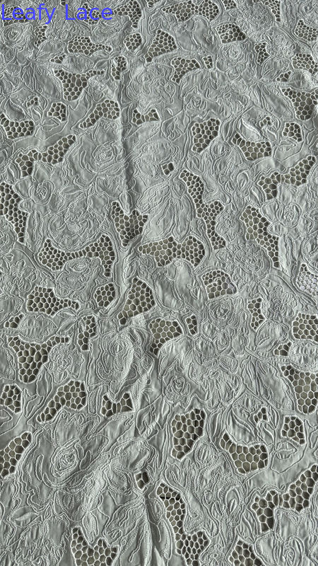 Teknologi Laser Kain renda bersulam berongga putih untuk gaun pengantin 1Teknologi Laser Kain renda bersulam berongga putih untuk gaun pengantin 2