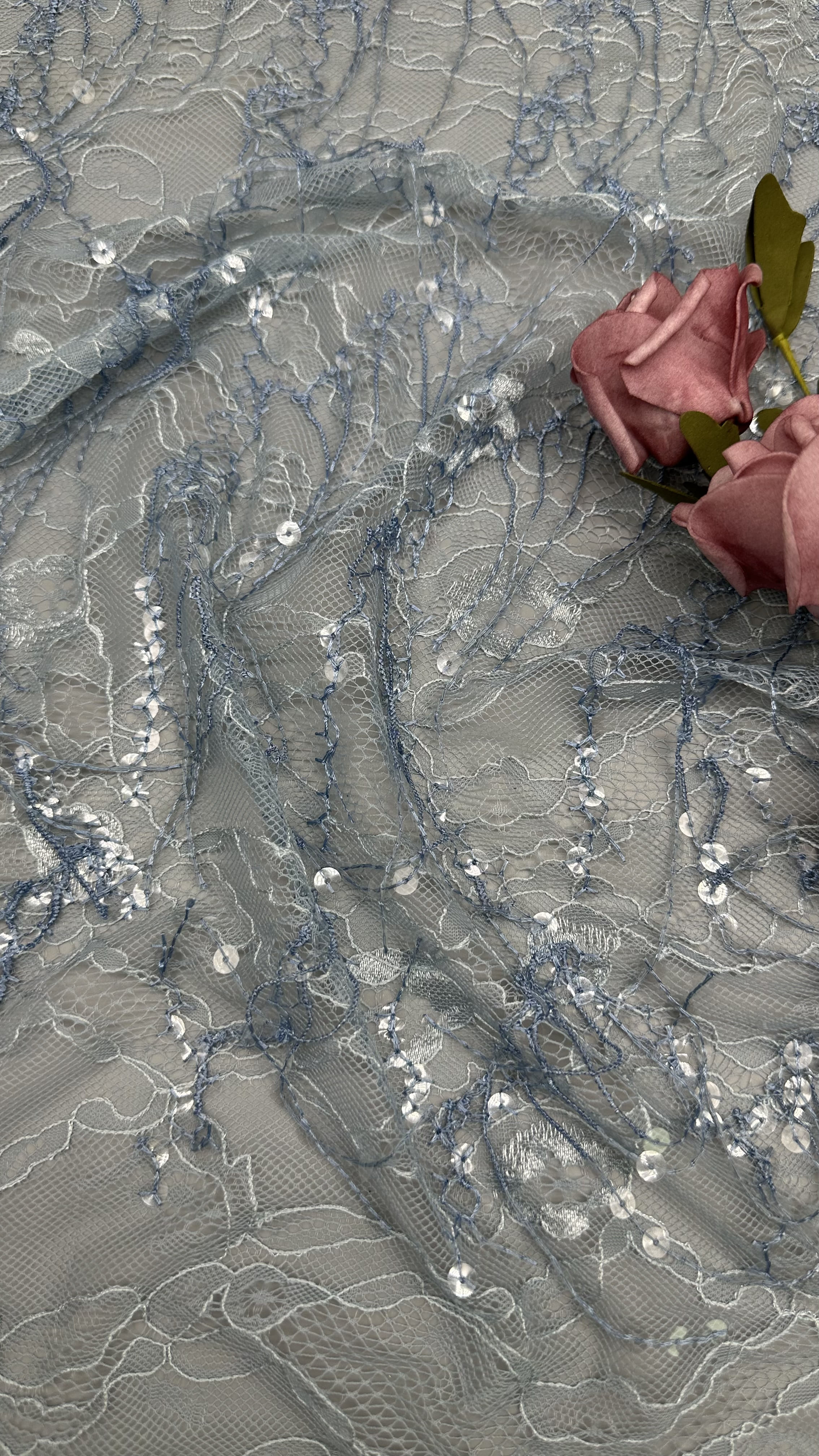 Sequin renda kain bordir berkualitas tinggi gaya Prancis, ideal untuk pakaian pengantin gaun malam dan dekorasi