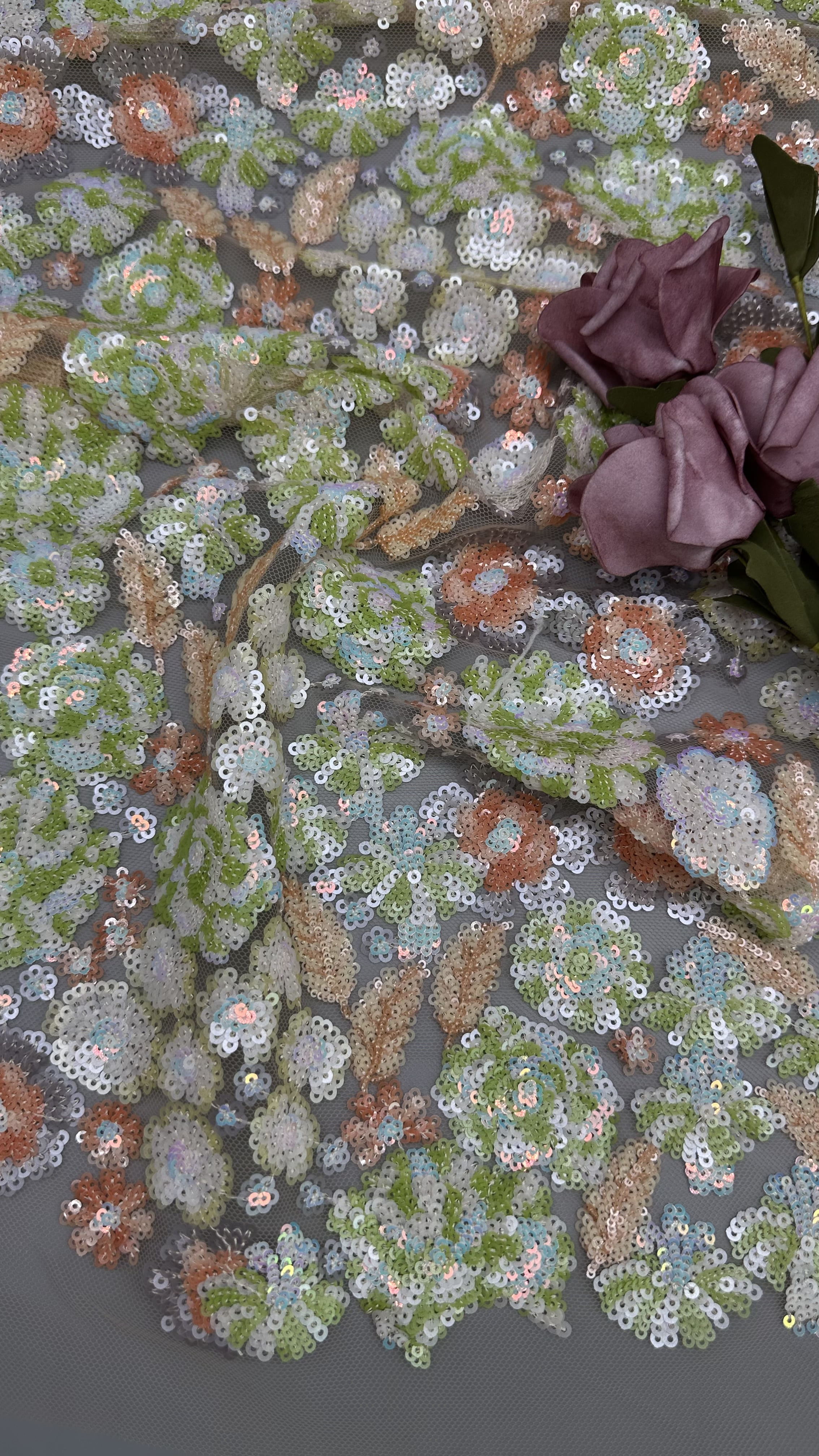 | Menyoroti: | Kain Berwarna-warni yang Diukir dengan Sequin,Renda Jaring Payet Berkilau,Renda Jaring Payet Untuk Gaun |