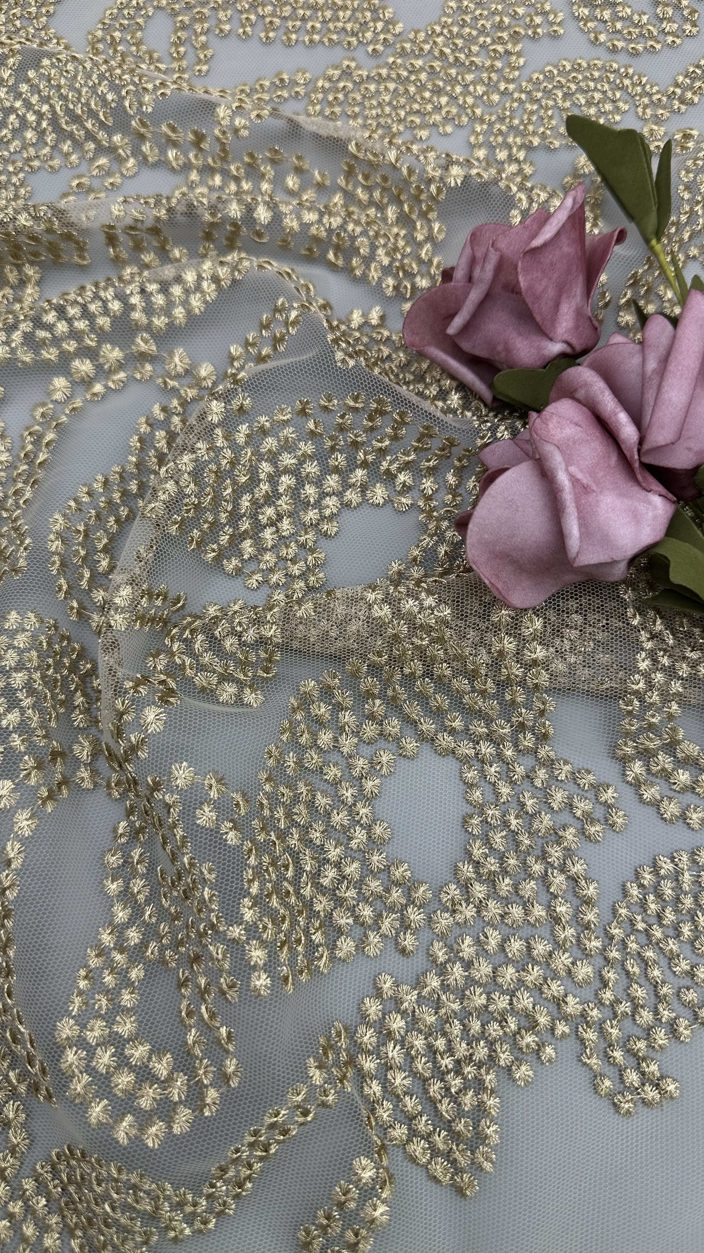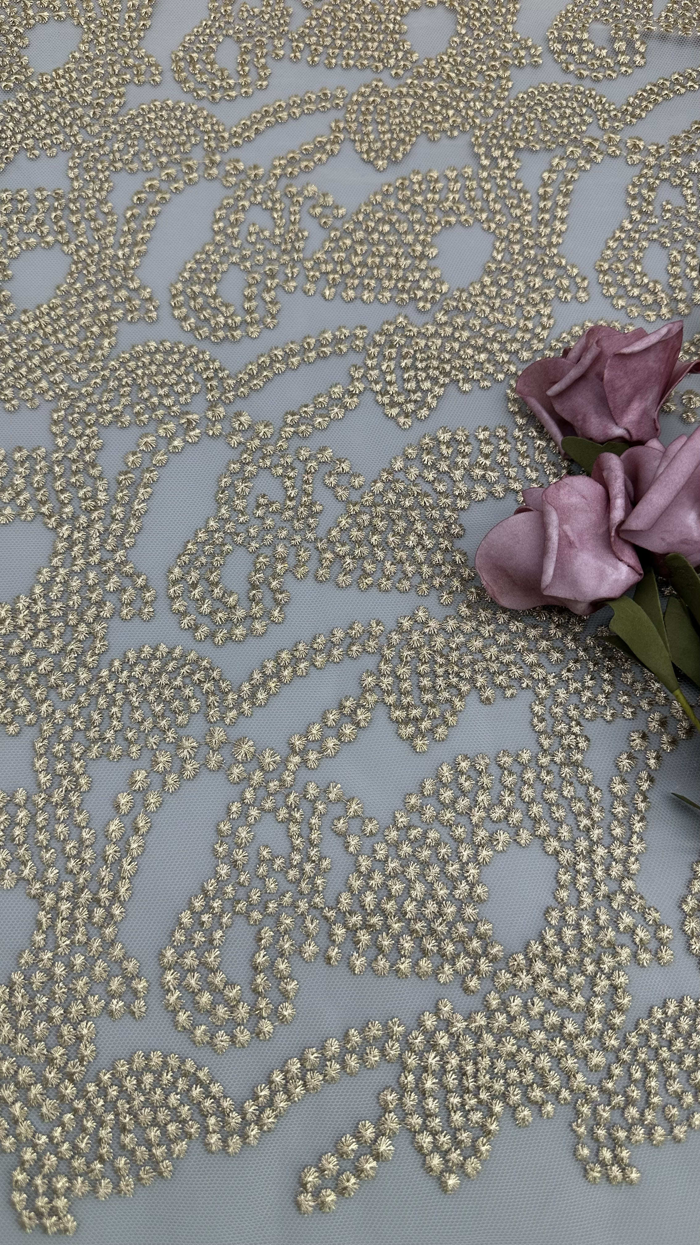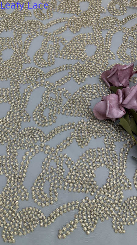 | Menyoroti: | kain renda metalik untuk gaun pengantin,kain renda berkord untuk gaun,kain metalik renda daun |
