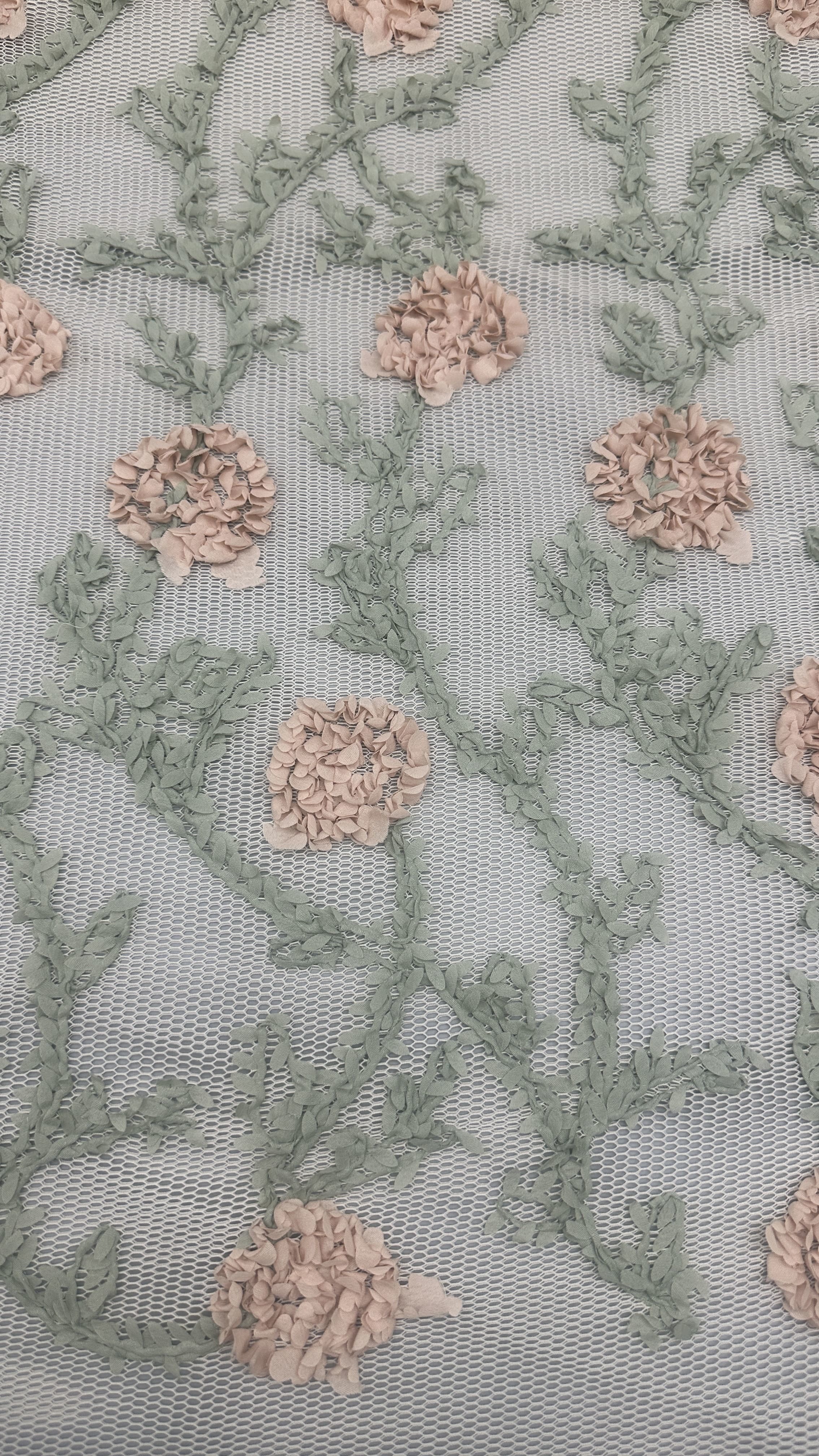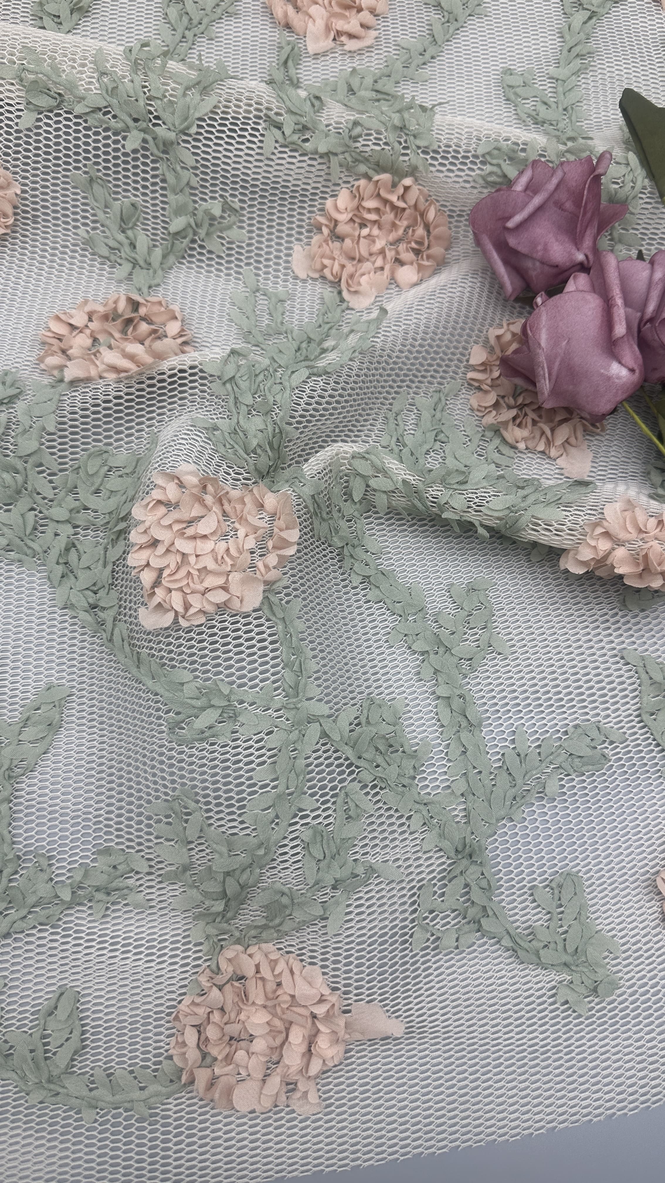 3D Appliqués: Menambahkan kedalaman dengan motif bunga dan daun timbul.