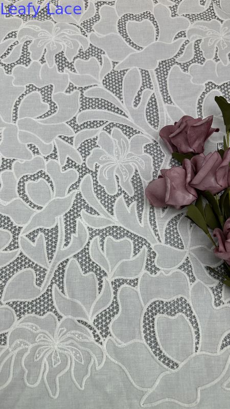 Kain bordir renda dengan motif daun halus adalah pilihan populer untuk gaun pernikahan dan pesta, yang menawarkan keanggunan, tekstur, dan detail yang rumit.Teknologi di balik produksinya melibatkan campuran kerajinan tradisional dan inovasi tekstil modern.