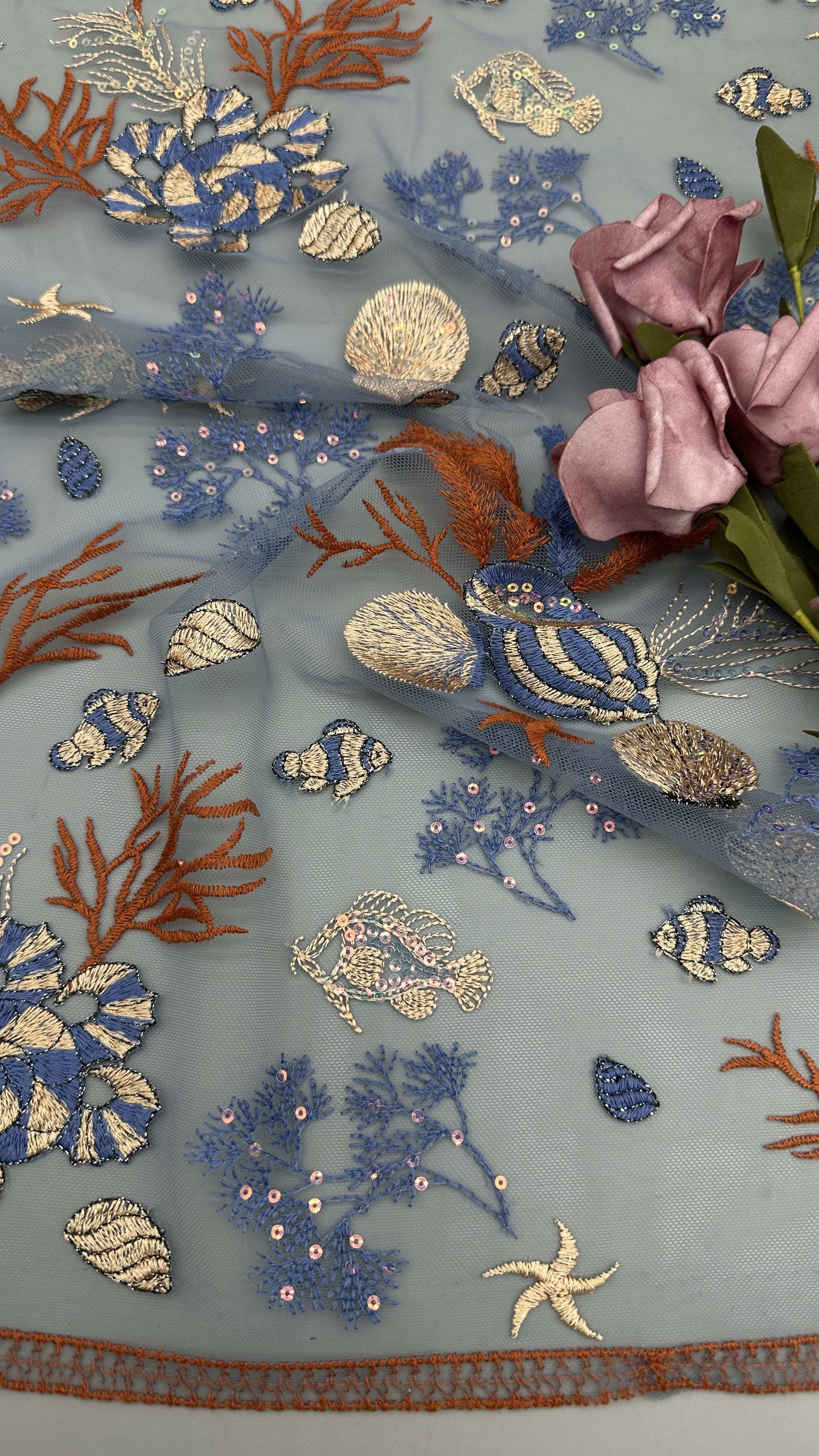 | Menyoroti: | kain renda bordir untuk gaun pesta,Kain berwarna ikan laut bersulam,Budaya Cina kain mesh mewah |