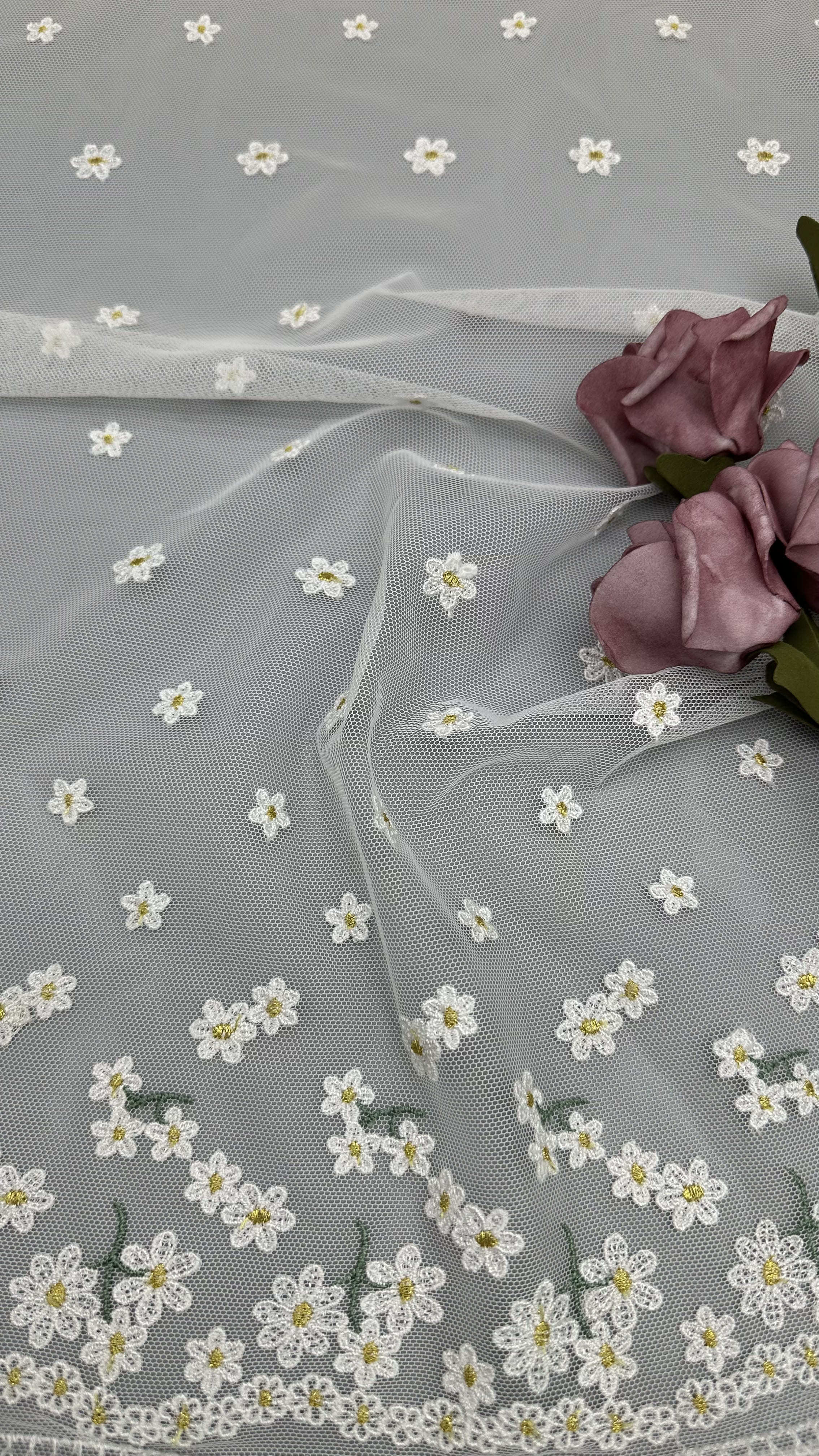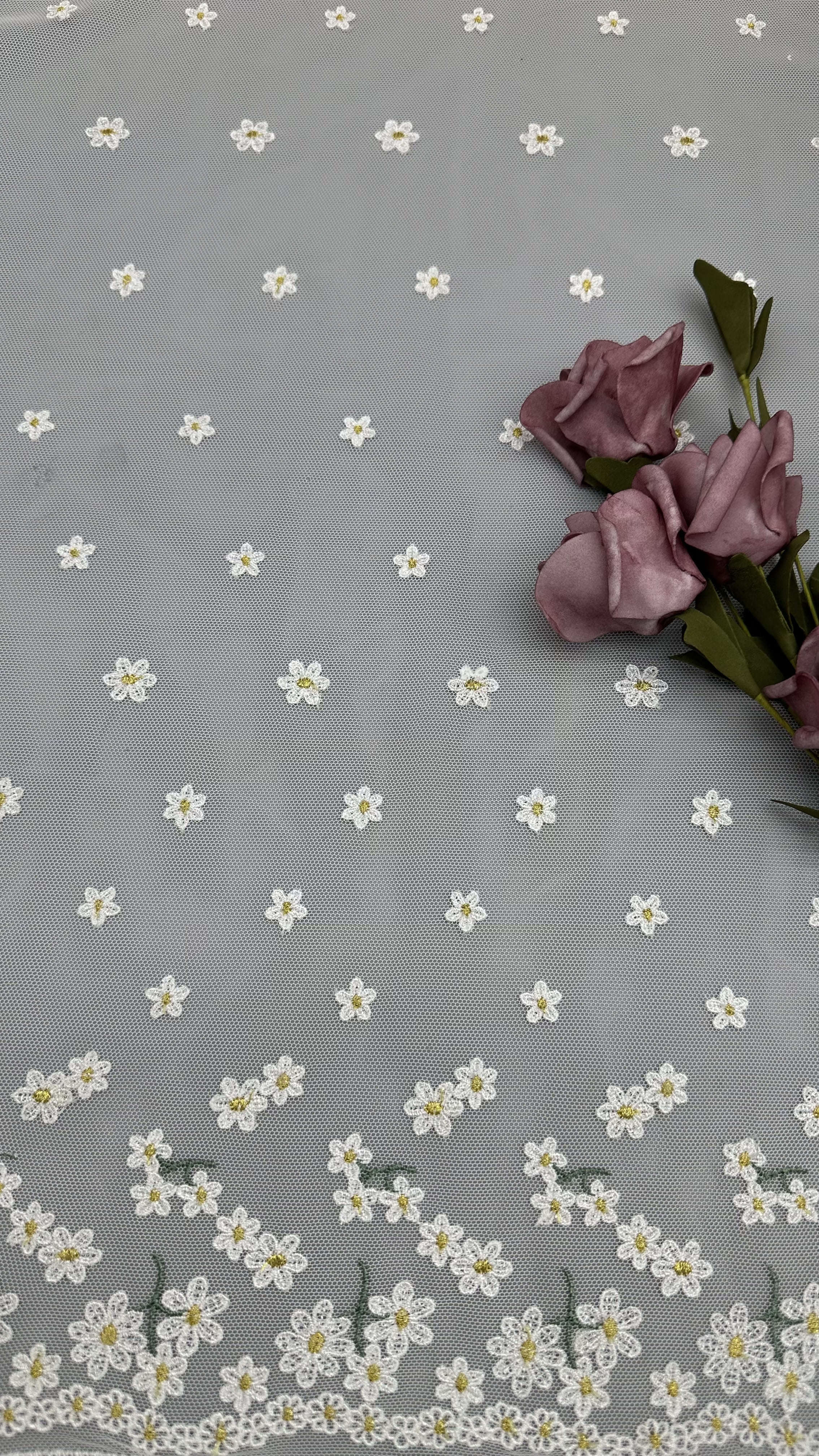 Kain bordir renda dengan motif dedaunan yang halus adalah pilihan populer untuk gaun pernikahan dan pesta, menawarkan keanggunan, tekstur, dan detail yang rumit. Teknologi di balik produksinya melibatkan perpaduan antara keahlian tradisional dan inovasi tekstil modern.