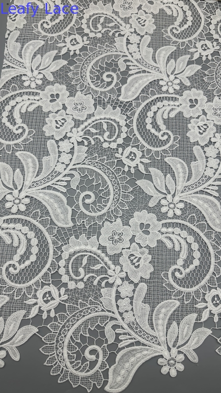 Kain bordir renda dengan motif dedaunan yang halus adalah pilihan populer untuk gaun pernikahan dan pesta, menawarkan keanggunan, tekstur, dan detail yang rumit. Teknologi di balik produksinya melibatkan perpaduan antara keahlian tradisional dan inovasi tekstil modern.