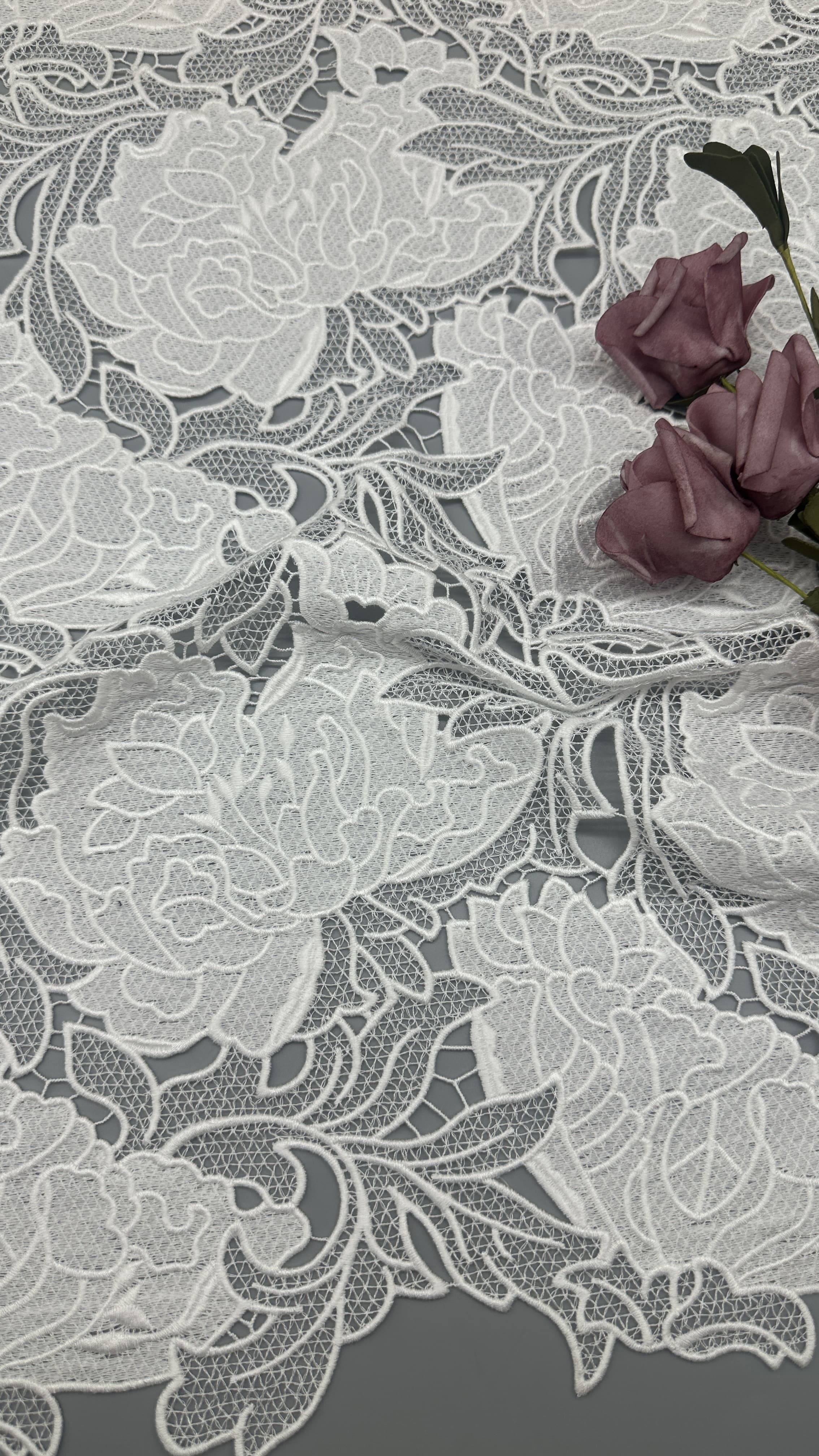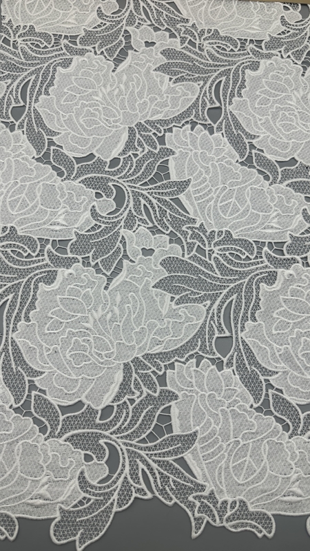 Kain bordir renda dengan motif daun halus adalah pilihan populer untuk gaun pernikahan dan pesta, yang menawarkan keanggunan, tekstur, dan detail yang rumit.Teknologi di balik produksinya melibatkan campuran kerajinan tradisional dan inovasi tekstil modern.