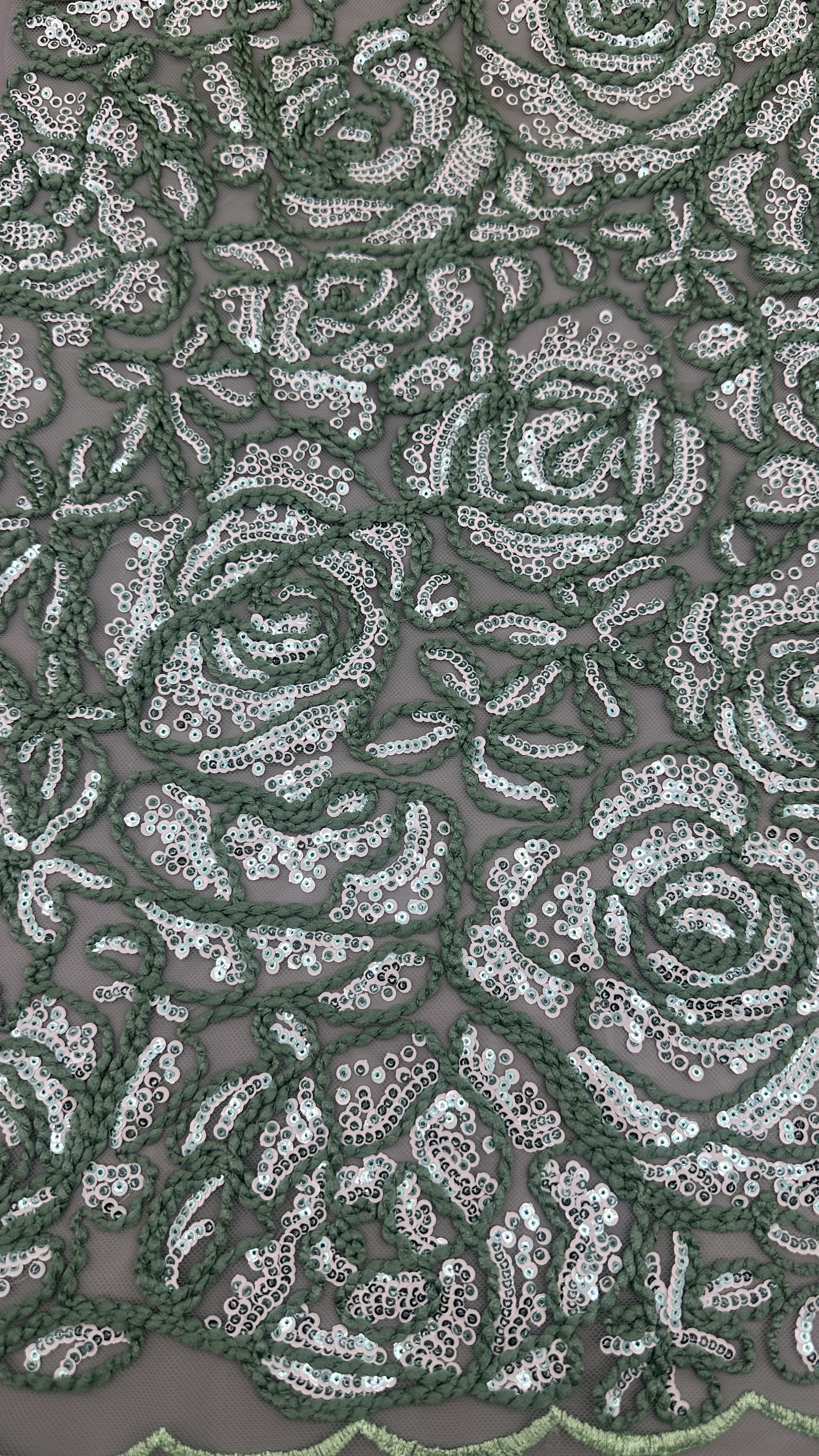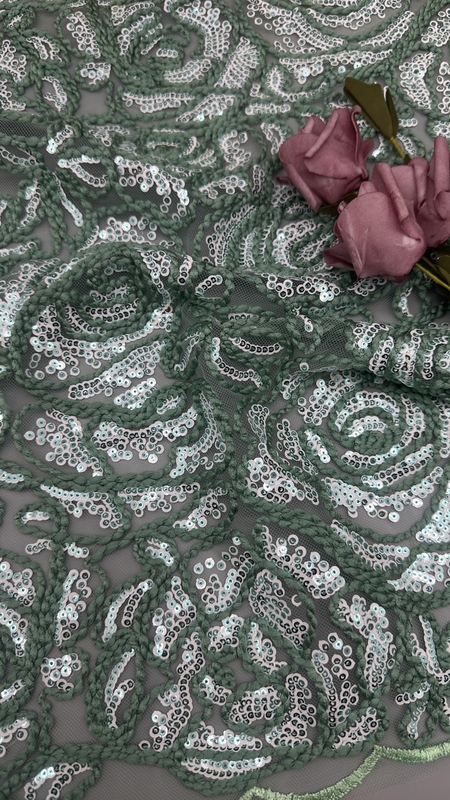 | Menyoroti: | sequin embroidered lace fabric,3D floral design fabric,customized fabric for gowns |