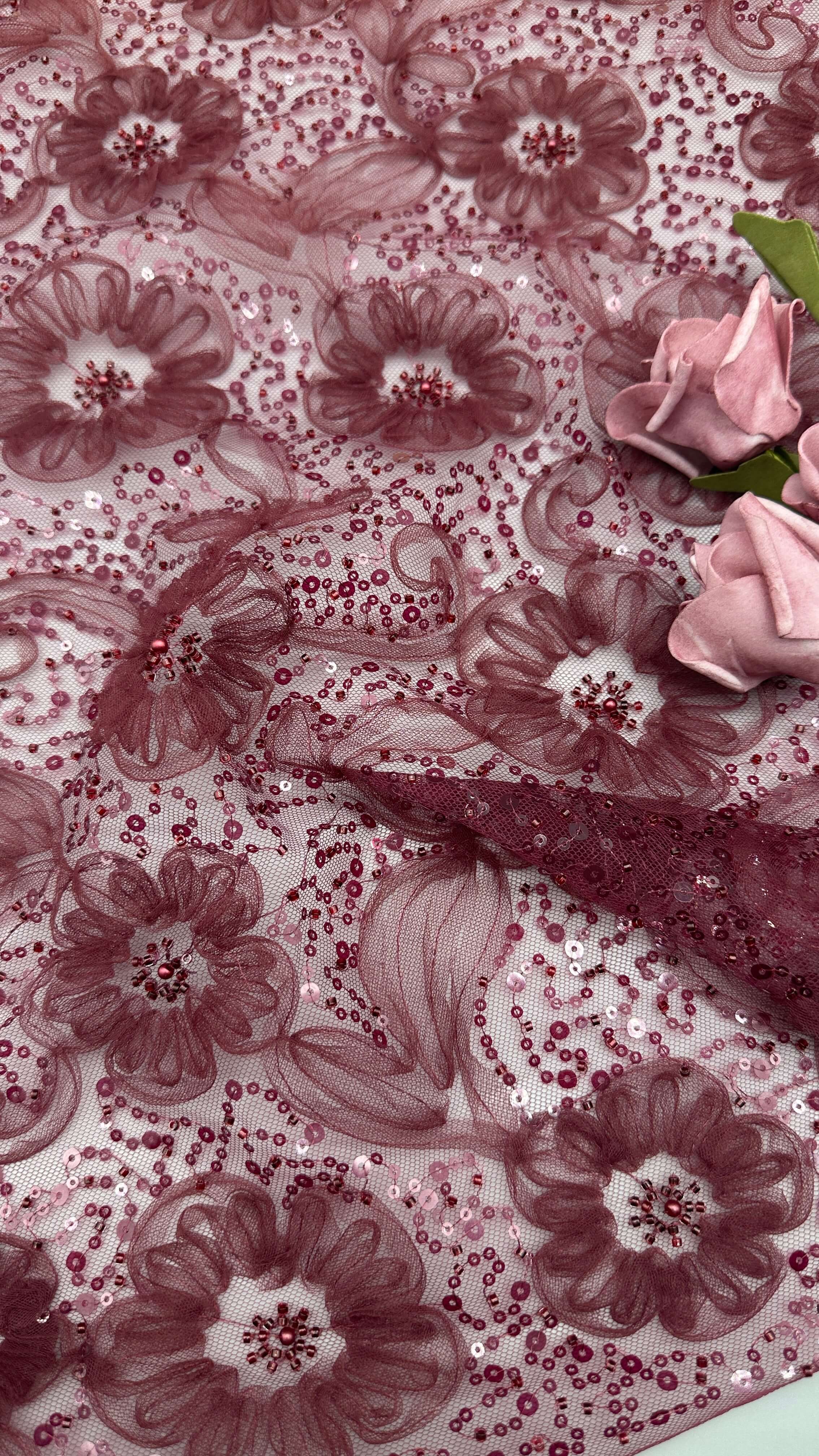 | Menyoroti: | sequin embroidered floral lace fabric,customized sequin gown fabric,3D floral lace dress fabric |