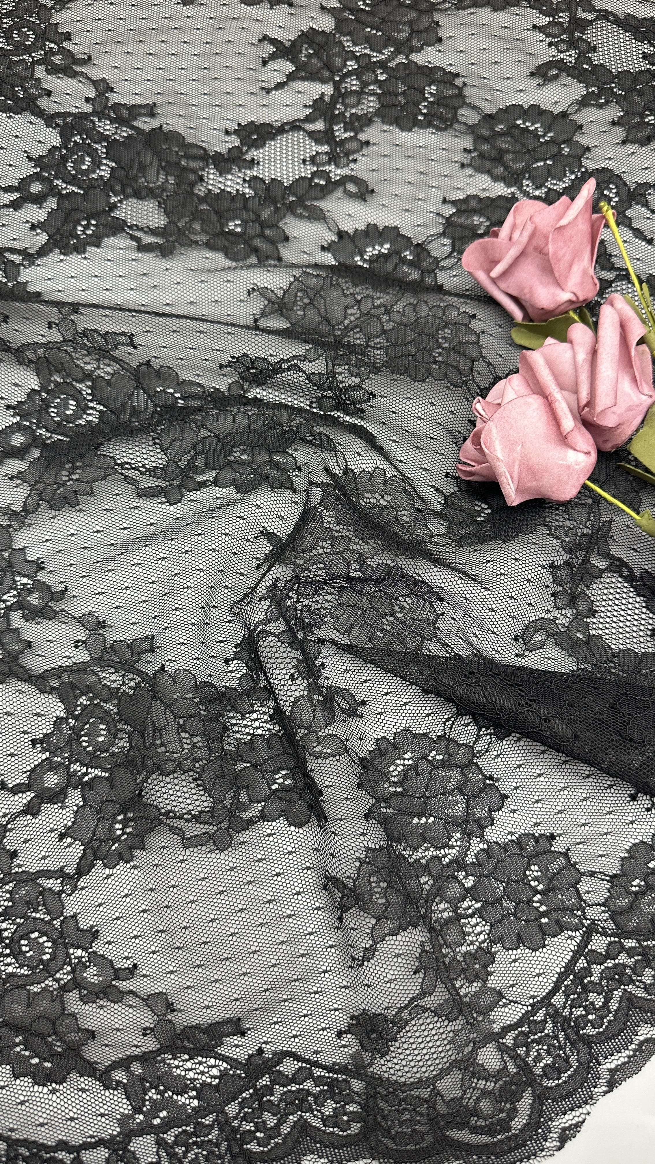 | Menyoroti: | Black French Chantilly lace trim,Elegant Chantilly lace for wedding dresses,Guipure lace trim for dresses |