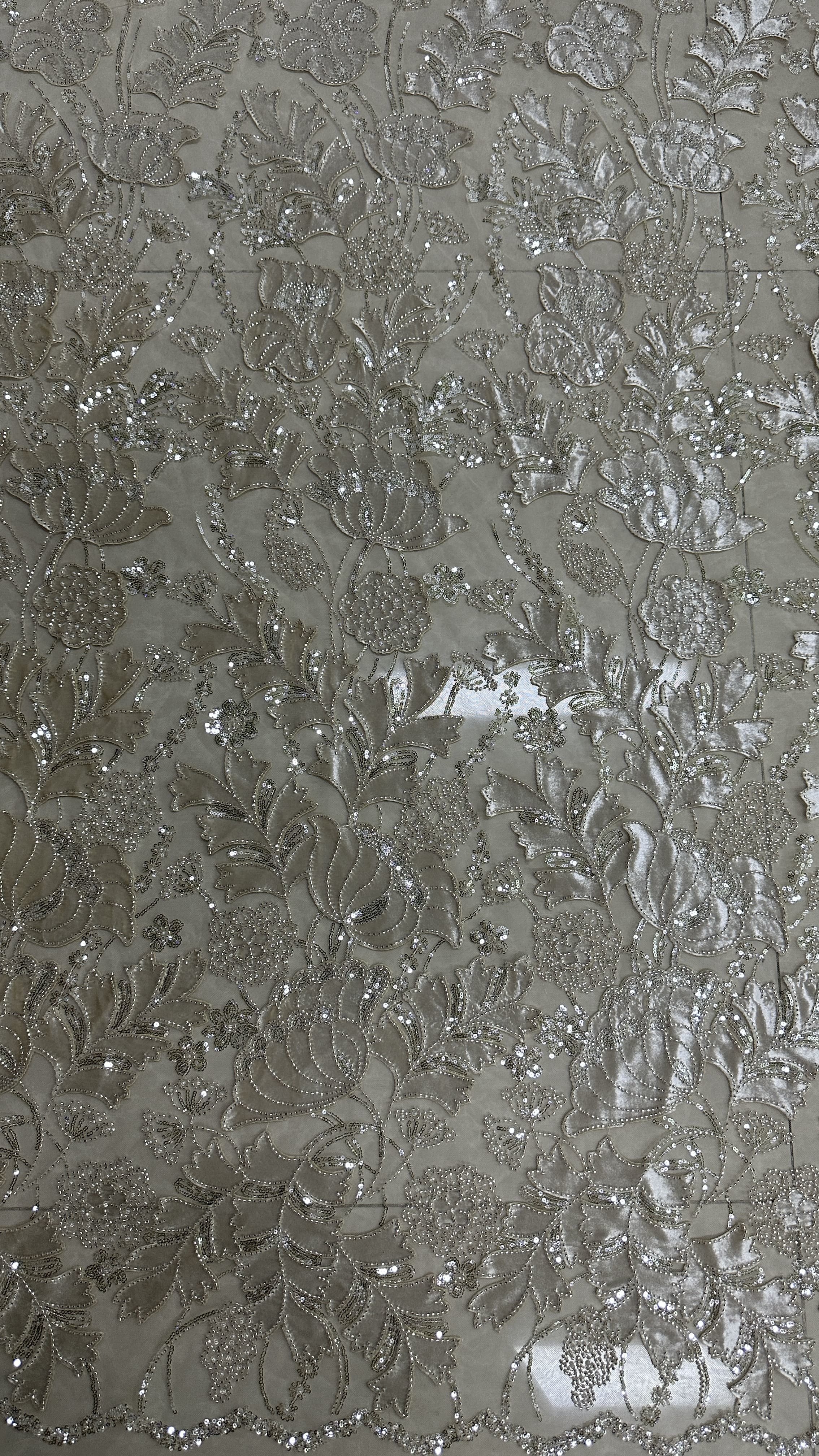 | Menyoroti: | sequin lace bridal fabric,3D floral wedding gown fabric,soft embroidered lace for dresses |